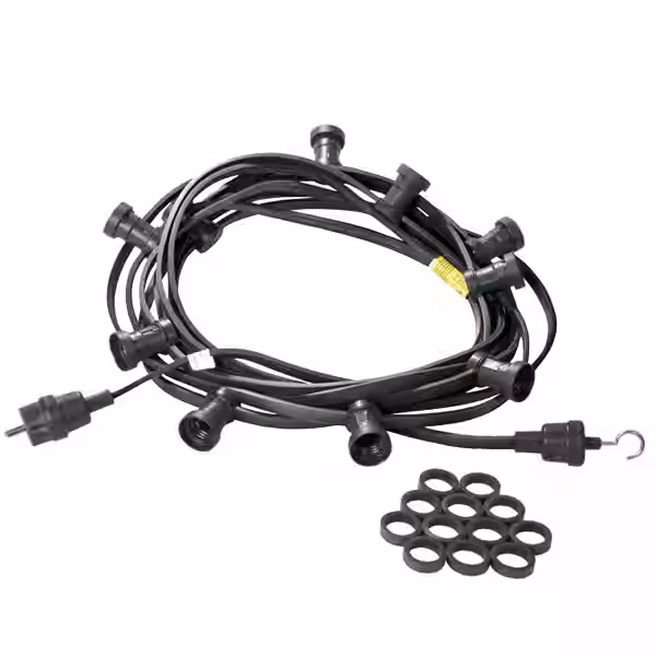 Illu-/Partylichterkette schwarz 5m – Außenlichterkette – Made in Germany – 10 x E27 Schraubfassung